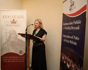 Refleksjami na temat znaczenia tej rocznicy — symbolicznie włączającej Polskę tysiąc lat temu do rodziny narodów Europy Zachodniej — podzielili się Alicja Donimirska, Prezes Zjednoczenia Polskiego, oraz Jerzy Boczkowski, Chargé d’Affaires Polski w Londynie.