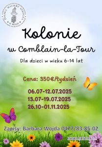 Polska Macierz Szkolna w Belgii zaprasza dzieci w wieku 6-14 lat na niezapomniane kolonie w malowniczym Comblain-la-Tour! To doskonała okazja, by spędzić aktywne wakacje wśród rówieśników, rozwijając swoje pasje, ucząc się poprzez zabawę i poznając polską kulturę w wyjątkowej atmosferze.